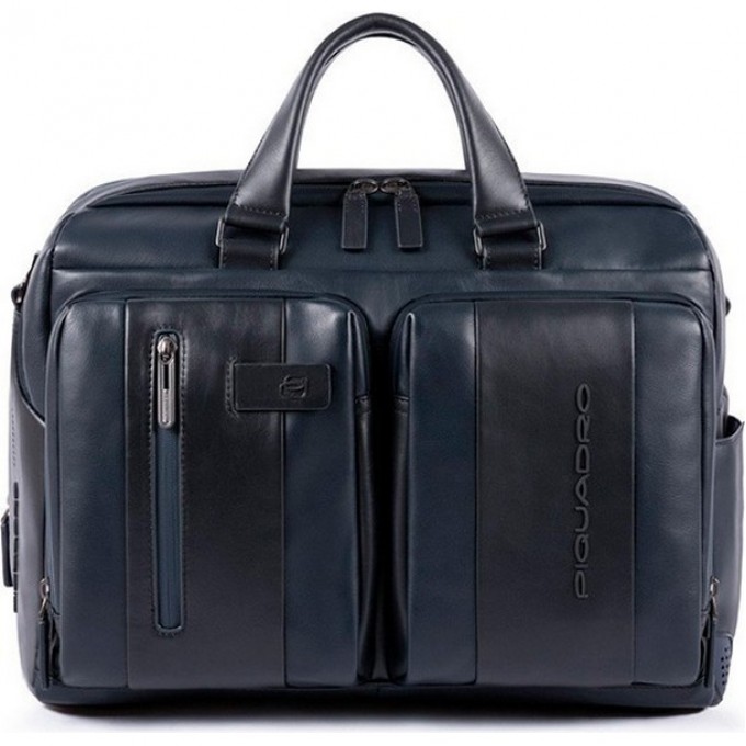 Большая кожаная мужская сумка из новой коллекции Piquadro Urban. Сумка изготовлена из гладкой телячьей кожи с использованием черненой фурнитуры. Имеет два отделения, в одном из которых находятся отсеки для 15.6 дюймового ноутбука и планшета а также кармашки для письменных принадлежностей и телефона, второе отделение прекрасно подойдет для документов формата А4. На передней части расположены два средних кармана на молнии, сбоку карман для бутылки. Молния по середине позволяет увеличить объем сумки в случае необходимости. Сумка комплектуется съемным плечевым ремнем.